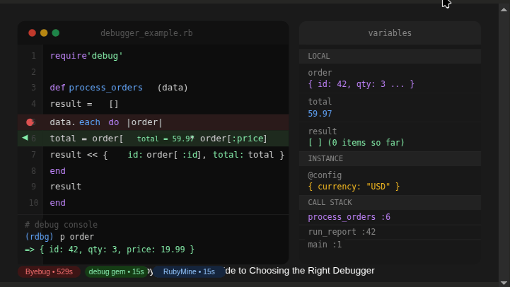 Choosing the Right Debugger March 12, 2026 A Ruby Developer's Guide to TracePoint, ISeq, and why your choice of debugger affects more than just comfort If you write Ruby, you debug Ruby. Whether it's a subtle off-by-one error in a data pipeline or a race condition buried in a Rails controller, debugging is as much … Continue reading Choosing the Right Debugger: TracePoint, ISeq, and why your choice of debugger affects more than just comfort