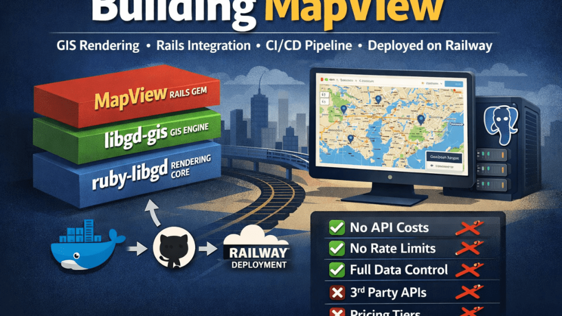 Building MapView: Architecture, CI/CD, and Production Deployment on Railway April 13, 2026 Introduction MapView is a server-side map rendering engine for Rails that generates high-quality geographic visualizations without external API dependencies. This article explores the technical architecture behind the project, its deployment pipeline, and how we leverage Railway for production hosting. The project encompasses multiple … Continue reading Building MapView: Architecture, CI/CD, and Production Deployment on Railway