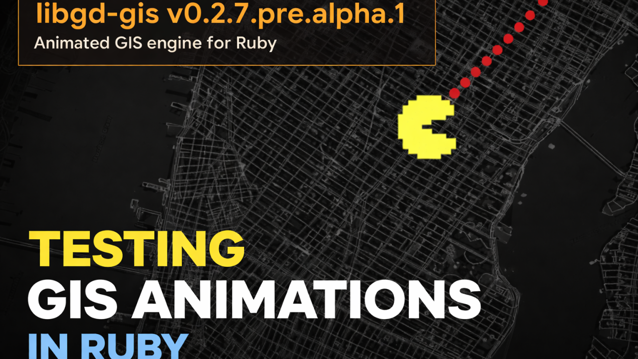 def draw_legend(img) x = 24 y = 24 w = 520 h = 90 pad = 18 bg = GD::Color.rgba(0, 0, 0, 190) border = GD::Color.rgb(255, 140, 0) title_col = GD::Color.rgb(255, 160, 40) sub_col = GD::Color.rgb(255, 210, 160) img.filled_rectangle(x, y, x + w, y + h, bg) img.rectangle(x, y, x + w, y + h, border) img.text( "libgd-gis v0.2.7.pre.alpha.1", x: x + pad, y: y + 38, size: 26, color: title_col, font: "fonts/GoogleSans-Bold.ttf" ) img.text( "Animated GIS engine for Ruby", x: x + pad, y: y + 68, size: 16, color: sub_col, font: "fonts/GoogleSans-SemiBold.ttf" )endThis alone demonstrates something important: libgd-gis does not depend on a frontend to produce presentable results.