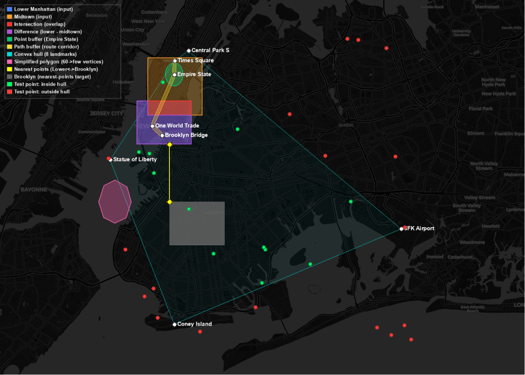 - GIS-aware: Understands coordinate systems, bounding boxes, and geographic primitives natively